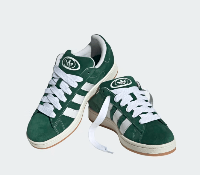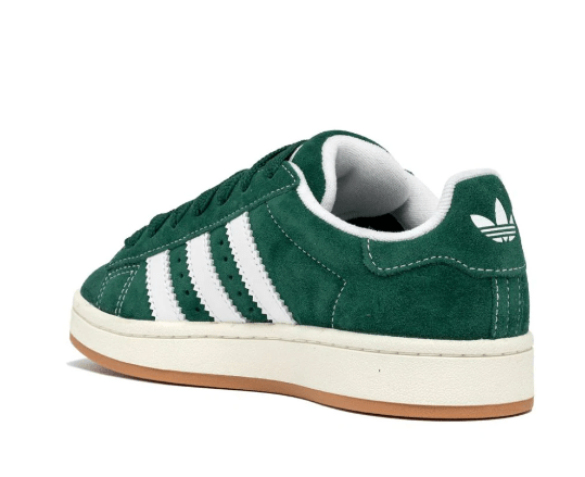 Adidas Campus OG in Velvet Green, suede, three striped, lace, white lining, brown sole