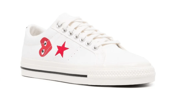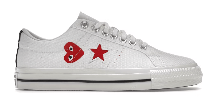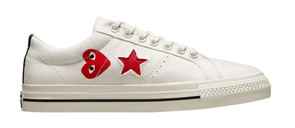 CDG Play, Comme Des Garçons Play, Converse One Star, CDG x Converse, Comme Des Garçons, CDG Converse One Star, Sneaker Collab, Limited Edition Kicks, Streetwear Style, Sneaker Heads, Minimal Sneakers, White Sneakers, Luxury Streetwear, Designer Sneakers, Heart On My Kicks, CDG Style, Sneaker Freak, One Star Love, Clean Fit, Drip Check
