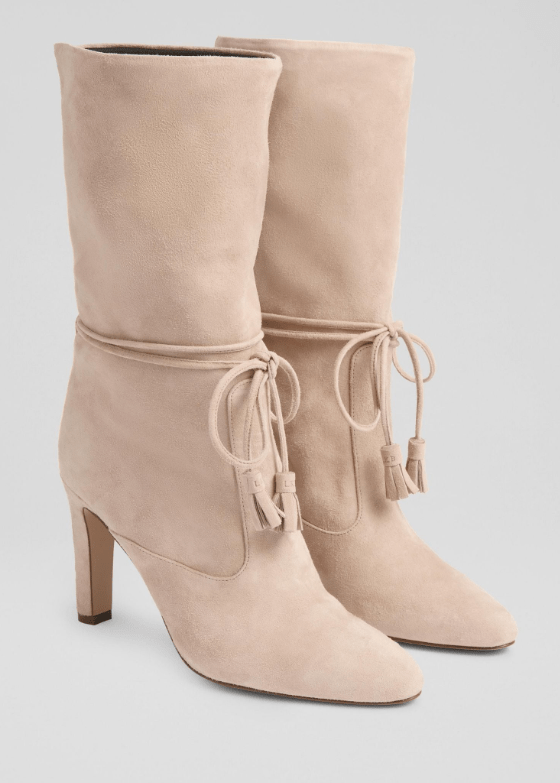 Maison Margiela Tabi Leather Boots, Christian Louboutin Booty Lock Boots, Christian Louboutin New Macadamia Boots, Jimmy Choo Snake-Print Boots, LK Bennett Eliza Suede Boots, Khaite Nevada Leather Boots, AllSaints Natasha Studded Boots, Luxury Footwear, Heeled Boots, Designer Boots, High-End Fashion, Stylish Boots, Fashion Forward, Footwear Trends, Luxury Lifestyle, Ankle Boots.